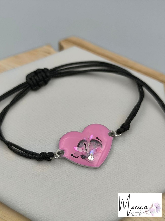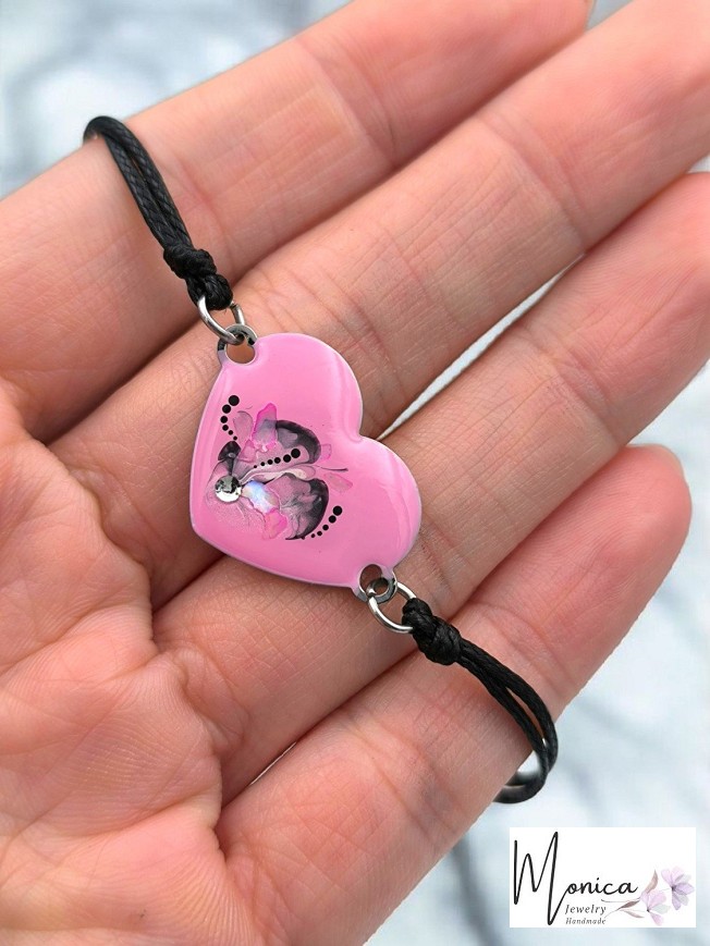 Unique hand-painted stainless steel bracelet on a waxed cord.
