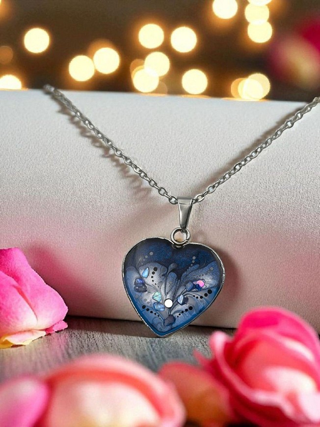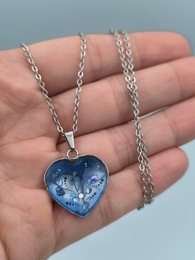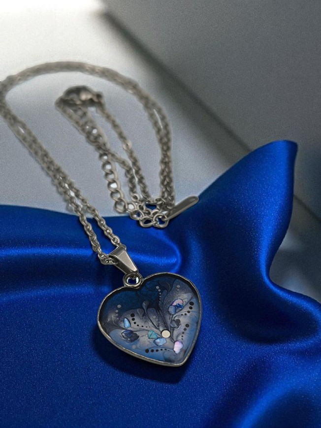 Unique hand-painted stainless steel necklace, with hypoallergenic stainless steel findings, on a 45 cm stainless steel chain with extender.
