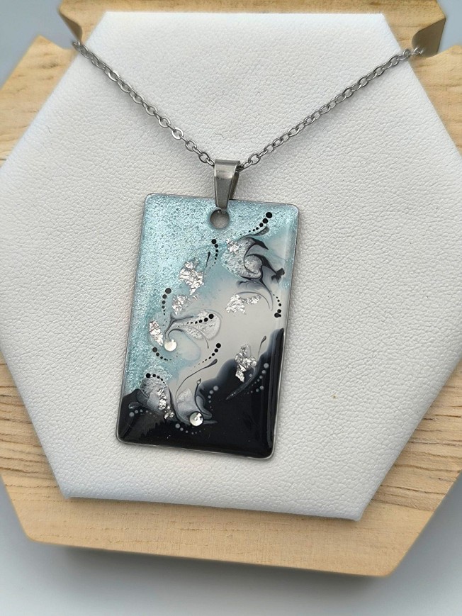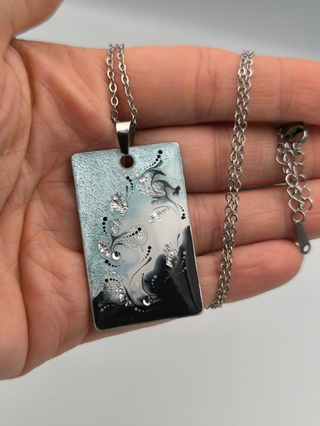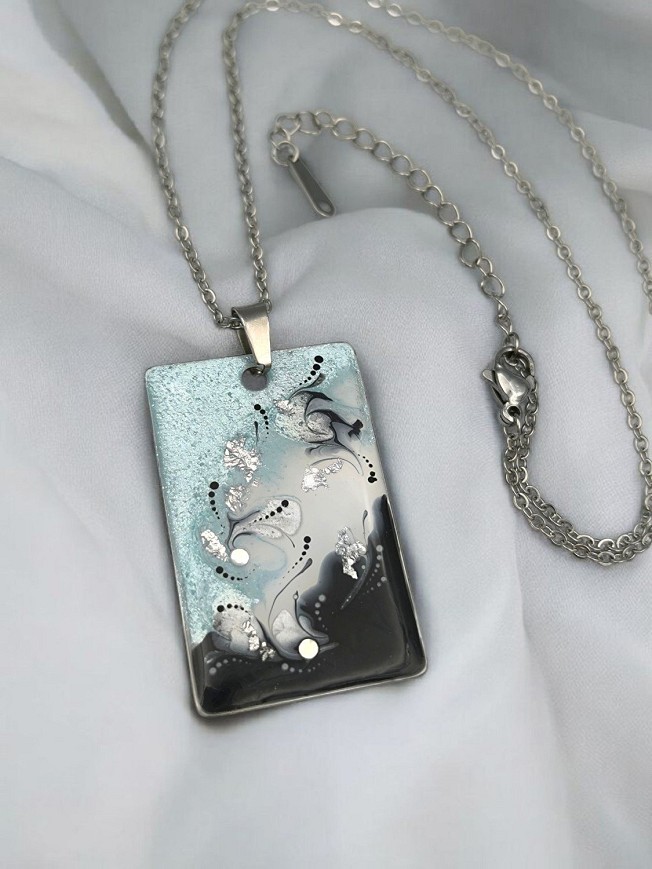 Unique hand-painted stainless steel necklace, with hypoallergenic stainless steel findings, on a 45 cm stainless steel chain with extender.