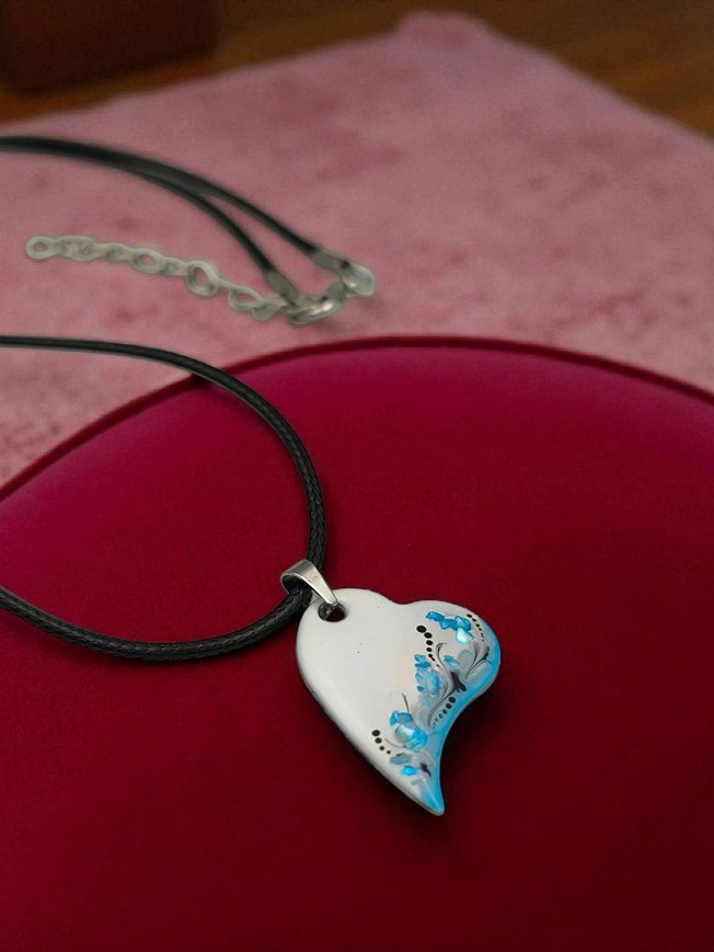 Unique hand-painted stainless steel necklace, with hypoallergenic stainless steel findings, on a 45 cm waxed chain with extender.