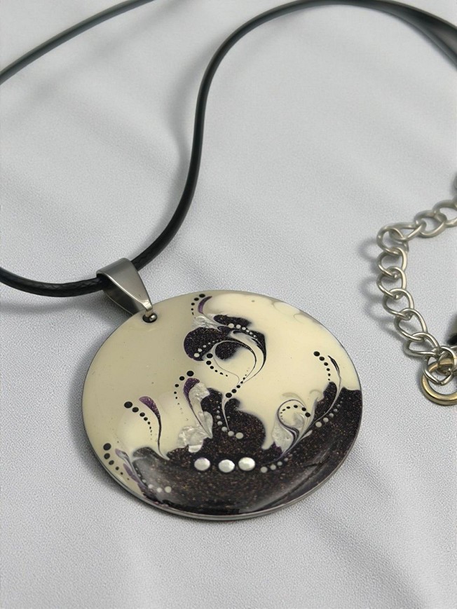 Unique hand-painted stainless steel necklace, with hypoallergenic stainless steel findings, on a 45 cm waxed chain with extender.
