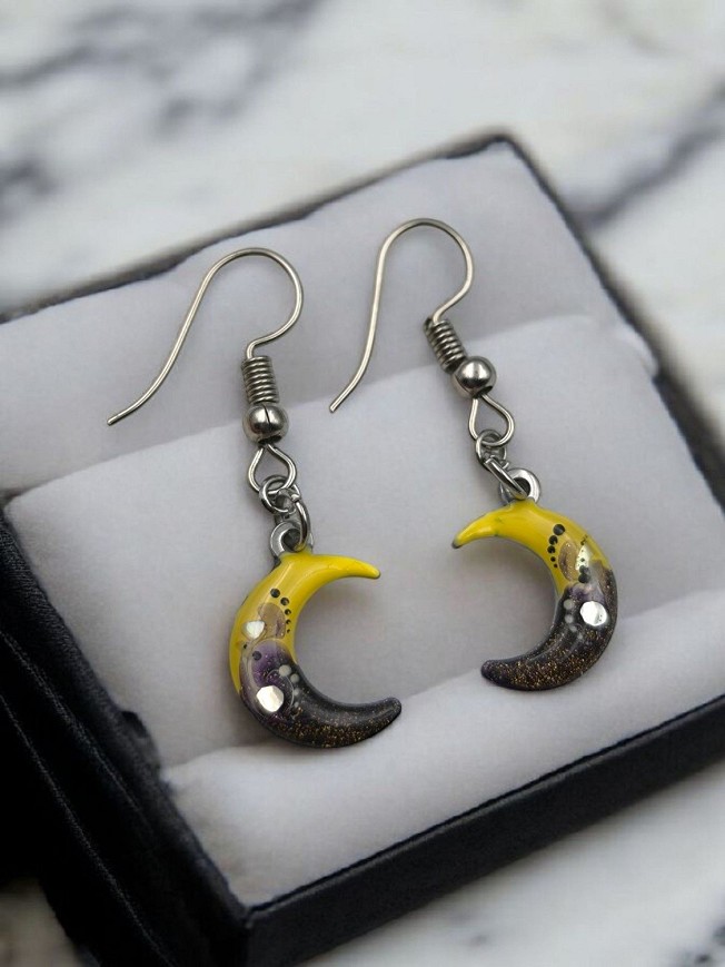 Egyedi kézzel festett nemesacél fülbevaló, antiallergén nemesacél szerelékkel.