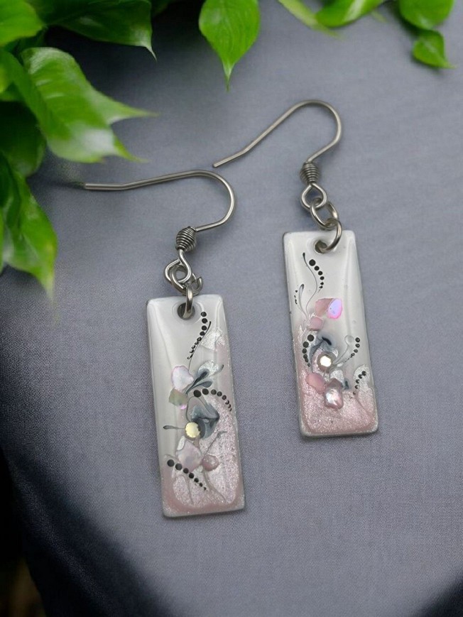 Egyedi kézzel festett nemesacél fülbevaló, antiallergén nemesacél szerelékkel.