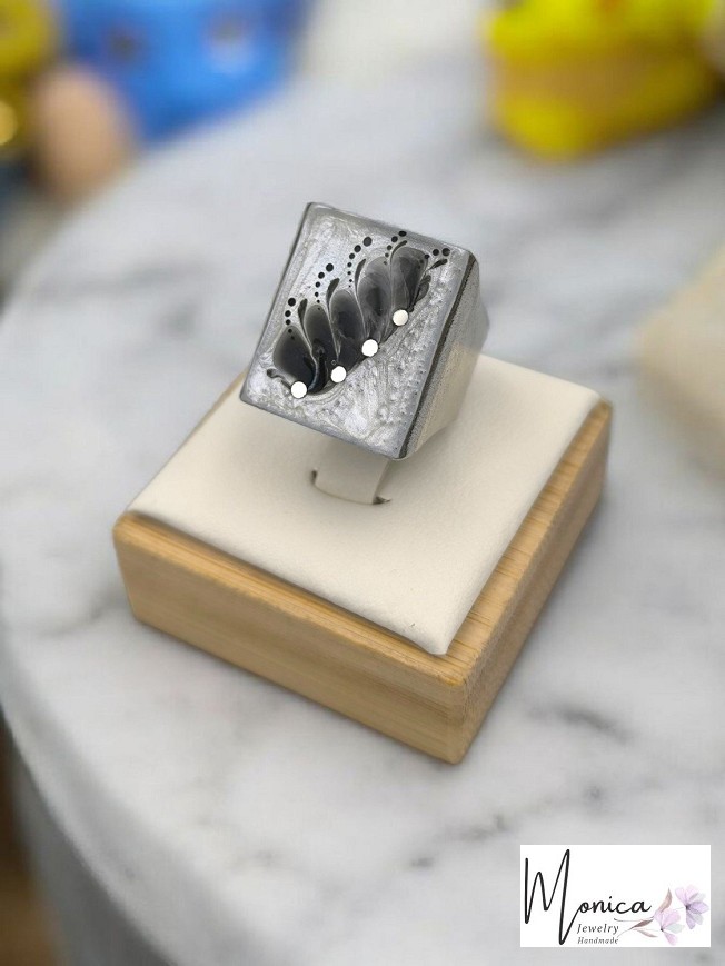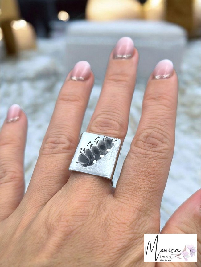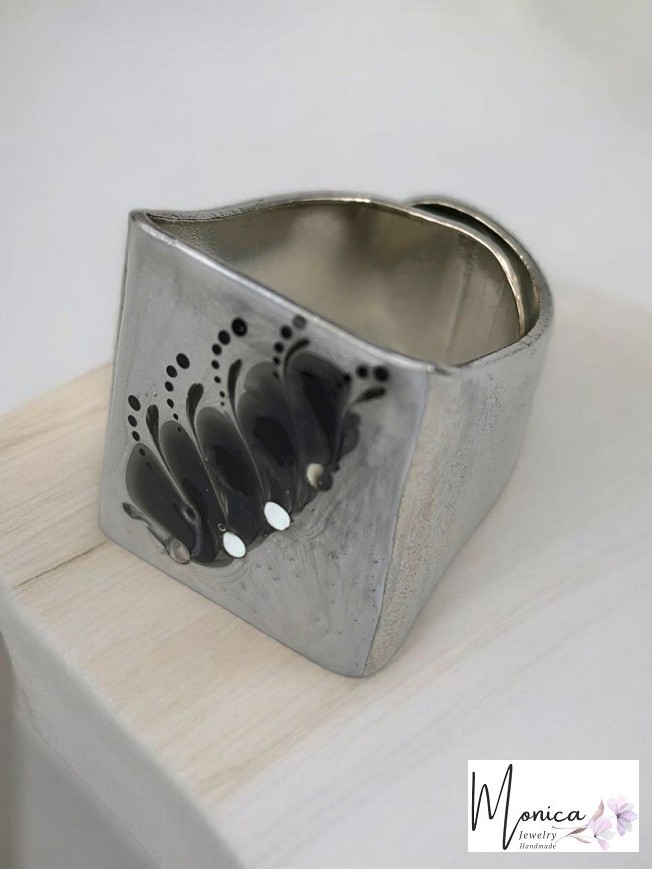 Egyedi kézzel festett nemesacél gyűrű, festett felülettel.