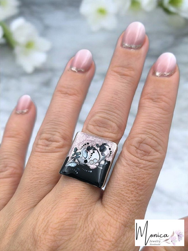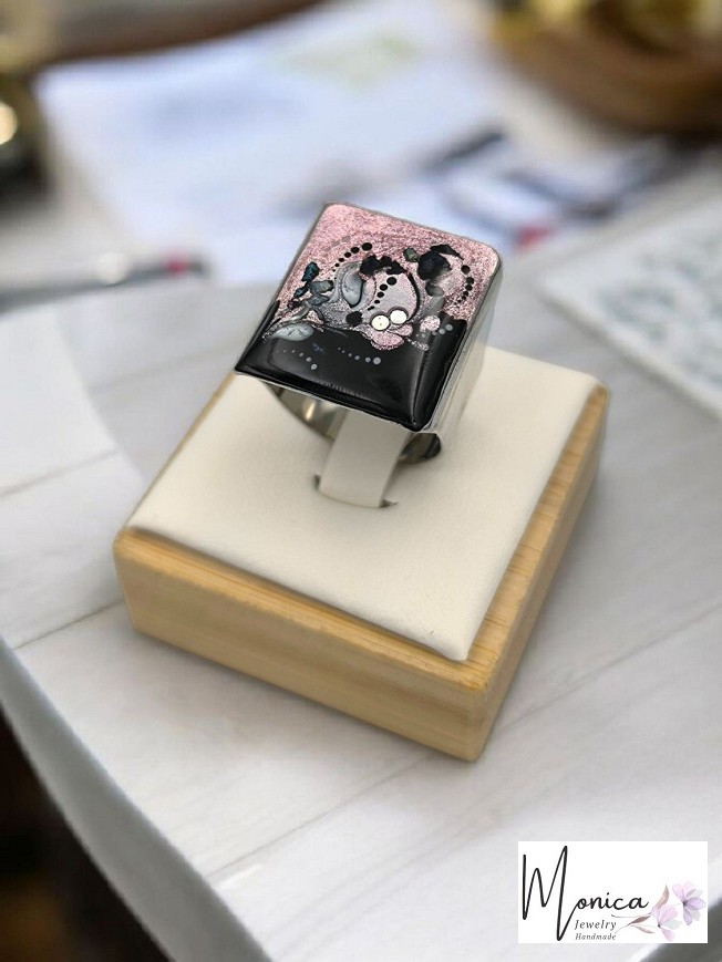 Egyedi kézzel festett nemesacél gyűrű, festett felülettel.