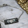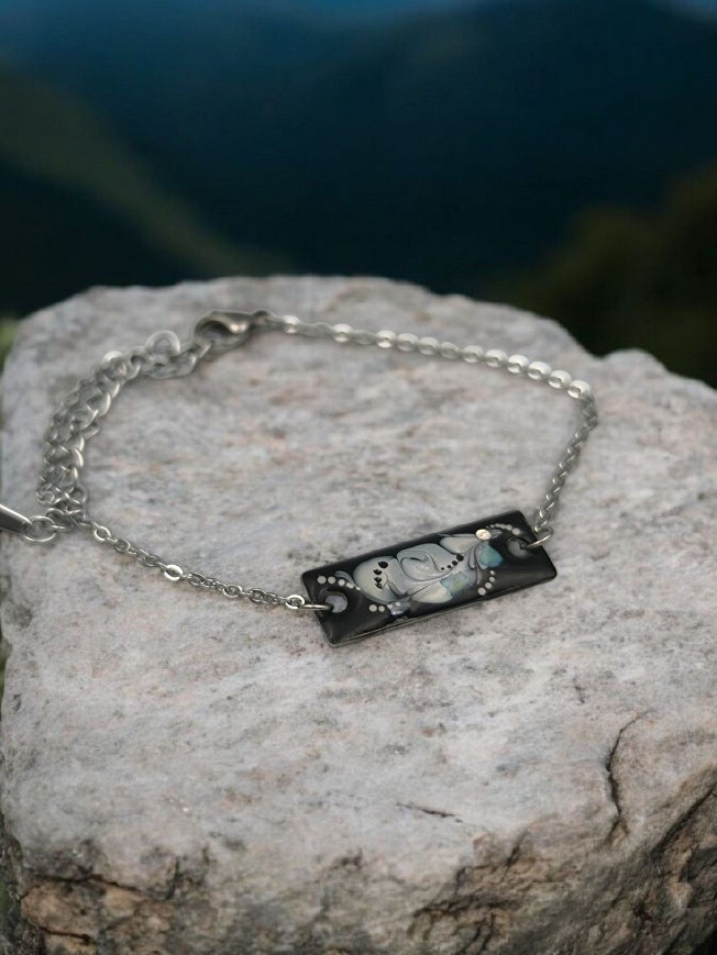 Egyedi kézzel festett nemesacél karkötő, antiallergén nemesacél szerelékkel, 14 cm-es nemesacél lánccal, lánchosszabbítóval felszerelve.