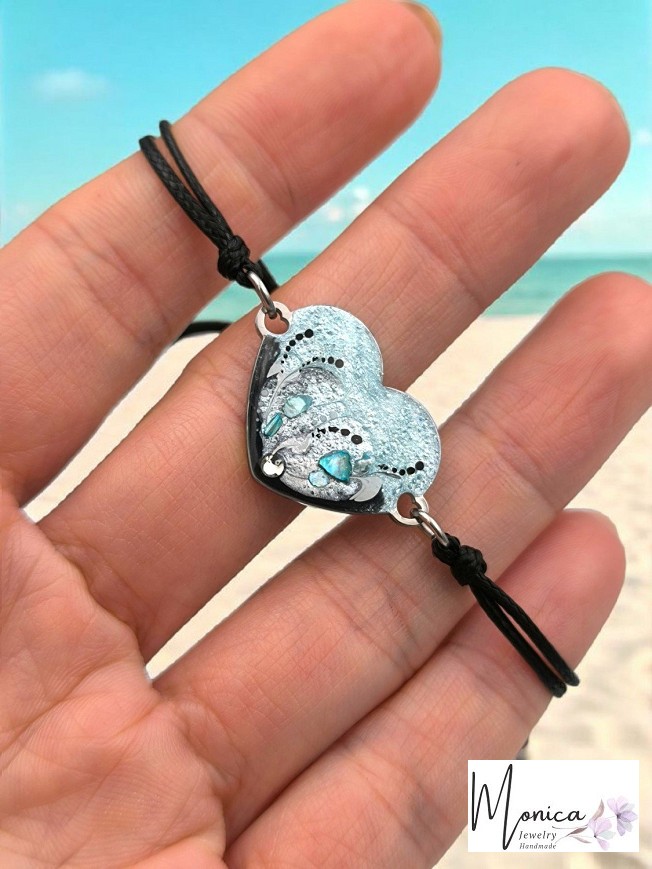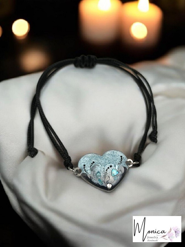 Egyedi kézzel festett nemesacél karkötő viaszolt zsinóron.