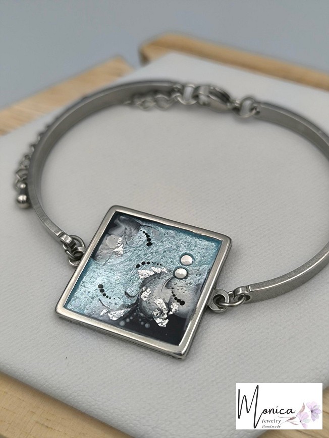 Egyedi kézzel festett nemesacél karkötő, antiallergén nemesacél szerelékkel.