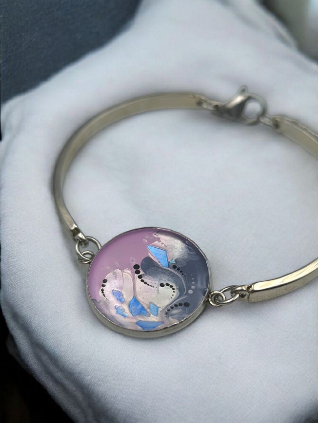 Egyedi kézzel festett nemesacél karkötő, antiallergén nemesacél szerelékkel.