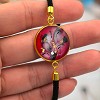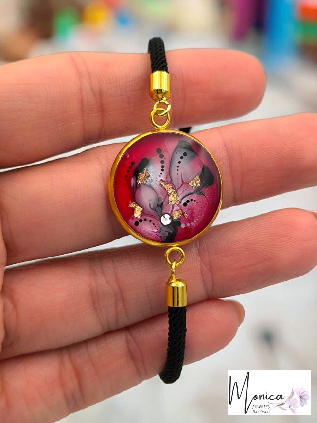 Egyedi kézzel festett nemesacél karkötő, antiallergén nemesacél szerelékkel, viaszolt zsinóron.