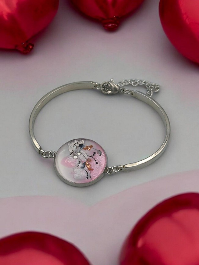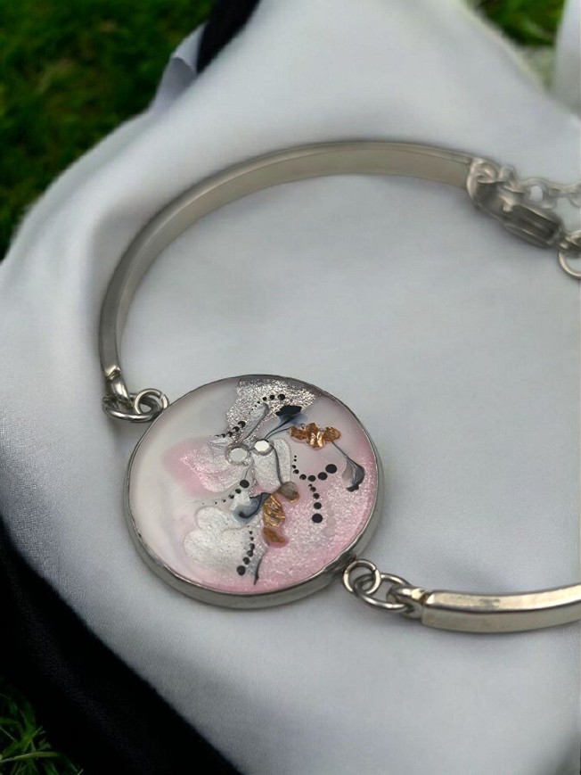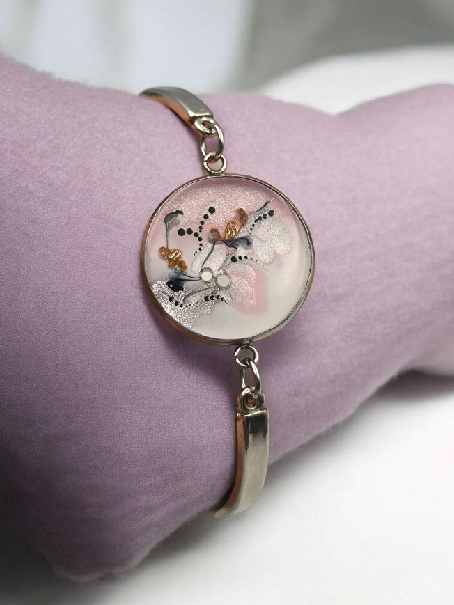 Egyedi kézzel festett nemesacél karkötő, antiallergén nemesacél szerelékkel.