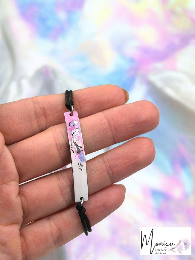 Egyedi kézzel festett nemesacél karkötő viaszolt zsinóron.