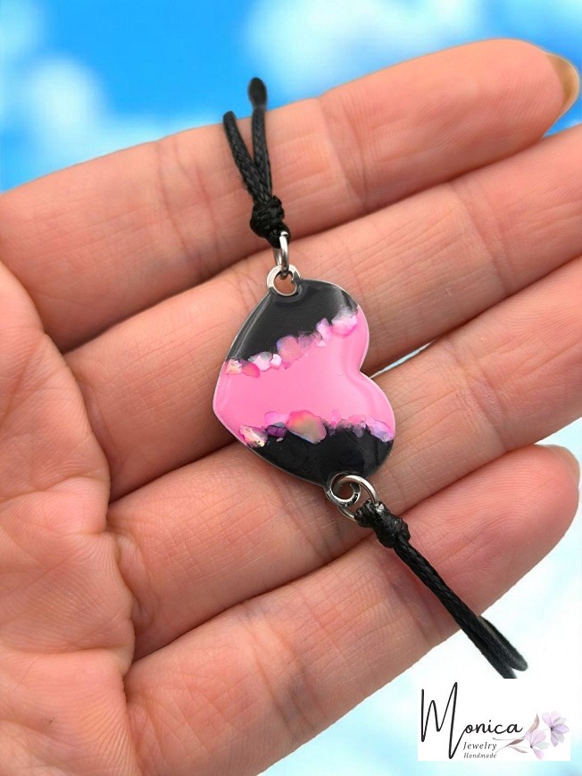 Egyedi kézzel festett nemesacél karkötő viaszolt zsinóron.