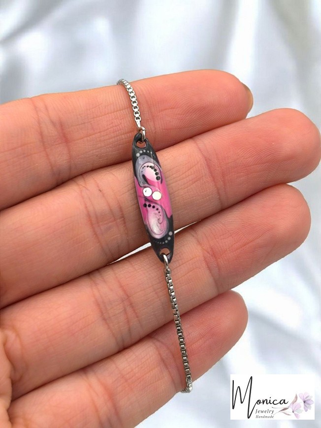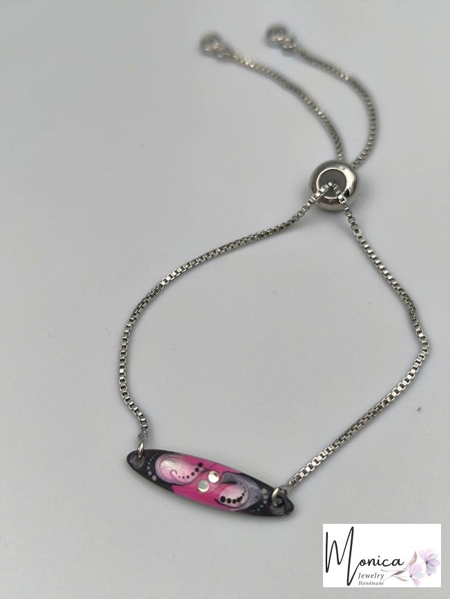 Egyedi kézzel festett nemesacél karkötő, állítható lánccal.