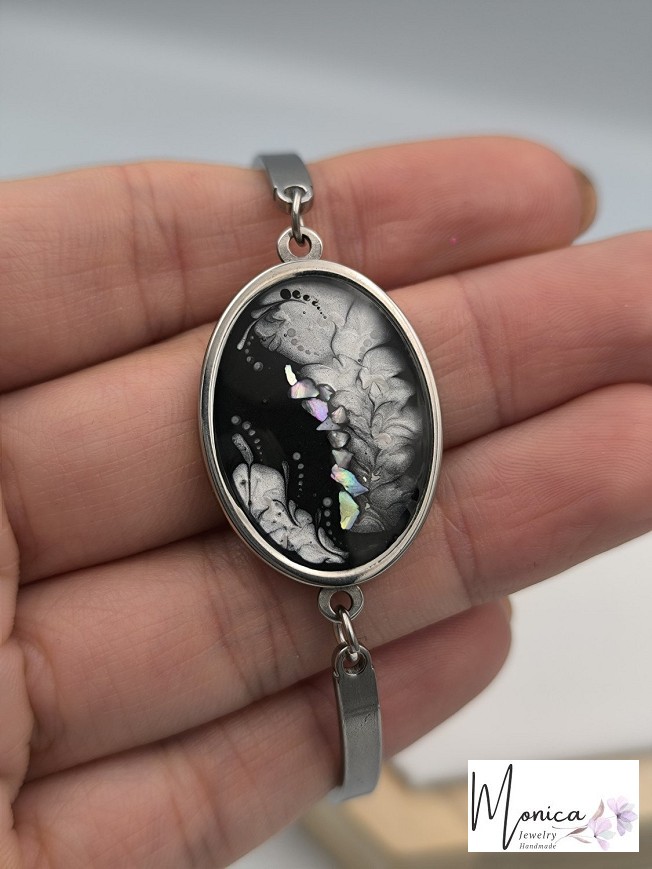 Egyedi kézzel festett nemesacél karkötő, antiallergén nemesacél szerelékkel.