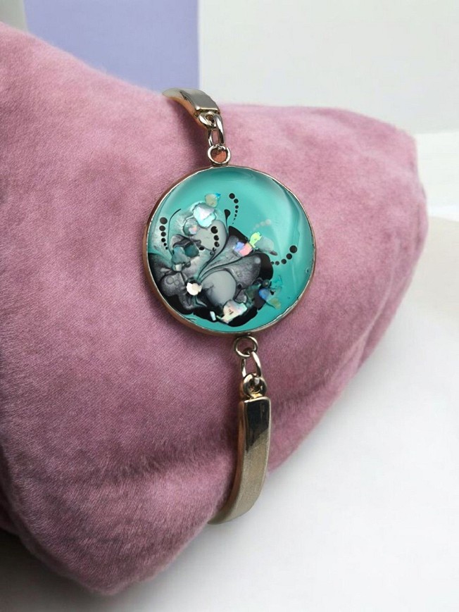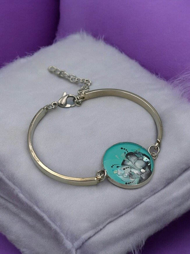 Egyedi kézzel festett nemesacél karkötő, antiallergén nemesacél szerelékkel.