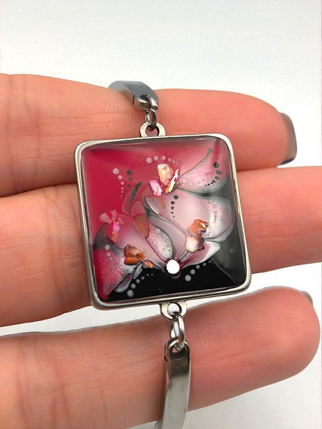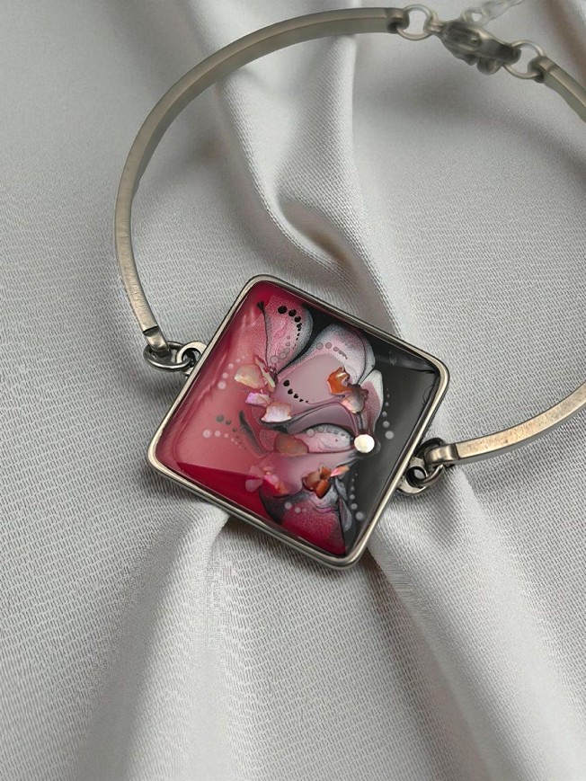 Egyedi kézzel festett nemesacél karkötő, antiallergén nemesacél szerelékkel.