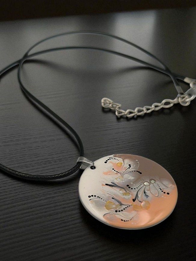 Egyedi kézzel festett nemesacél nyaklánc, antiallergén nemesacél szerelékkel, 45 cm-es viaszolt láncon, lánchosszabbítóval.