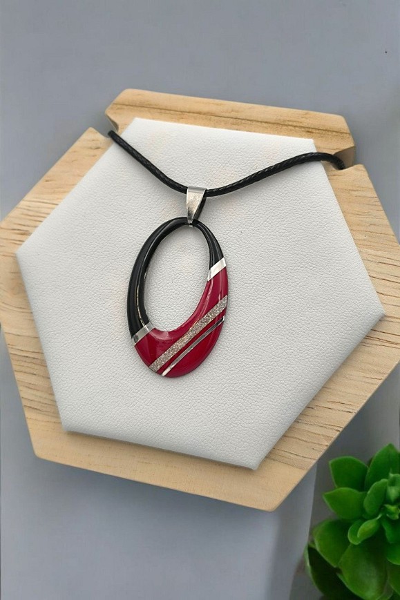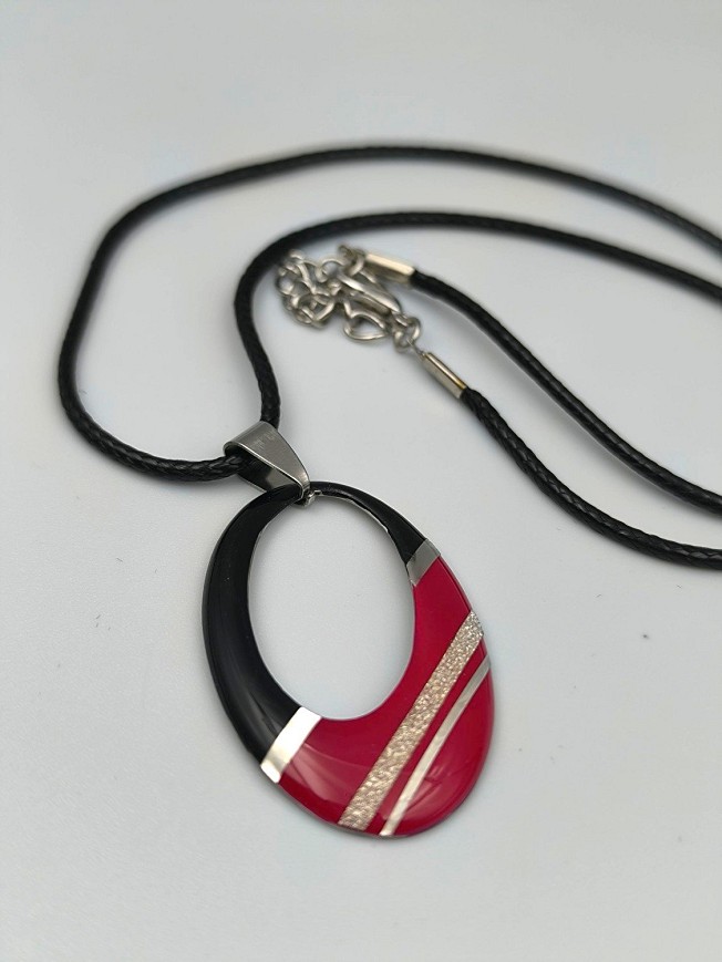 Egyedi kézzel festett nemesacél nyaklánc, antiallergén nemesacél szerelékkel, 45 cm-es viaszolt láncon, lánchosszabbítóval.