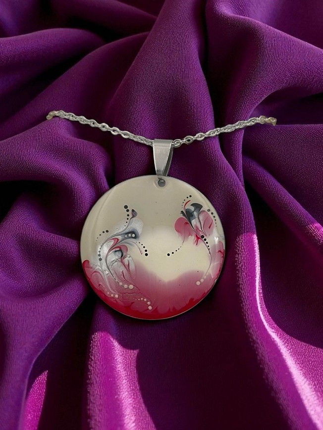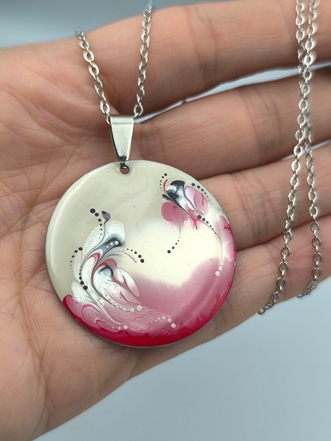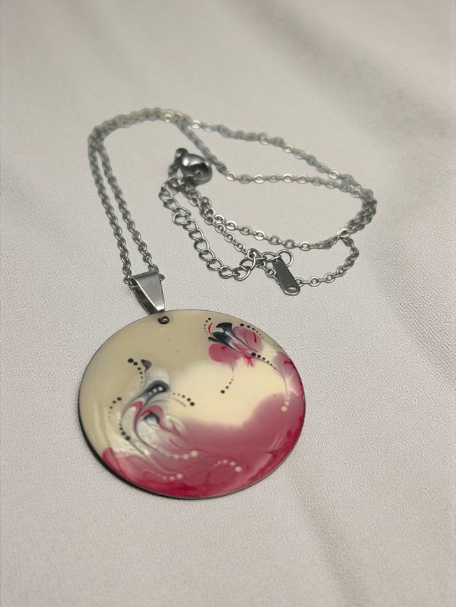 Egyedi kézzel festett nemesacél nyaklánc, antiallergén nemesacél szerelékkel, 45 cm-es nemesacél láncon, lánchosszabbítóval.