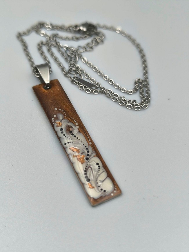 Egyedi kézzel festett nemesacél nyaklánc, antiallergén nemesacél szerelékkel, 45 cm-es nemesacél láncon, lánchosszabbítóval.