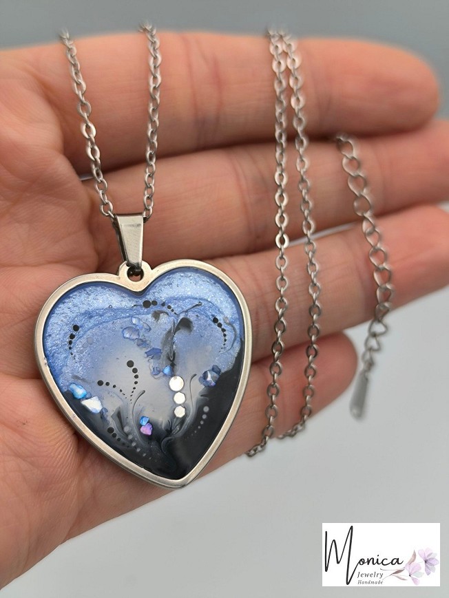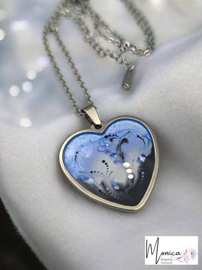 Egyedi kézzel festett nemesacél nyaklánc, antiallergén nemesacél szerelékkel, 45 cm-es nemesacél láncon, lánchosszabbítóval.