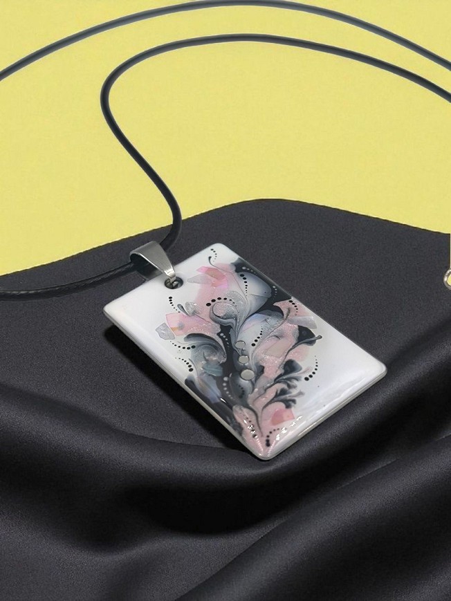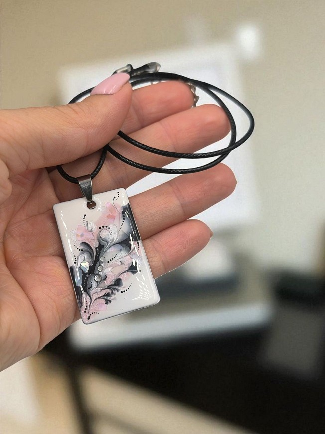 Egyedi kézzel festett nemesacél nyaklánc, antiallergén nemesacél szerelékkel, 45 cm-es viaszolt láncon, lánchosszabbítóval.