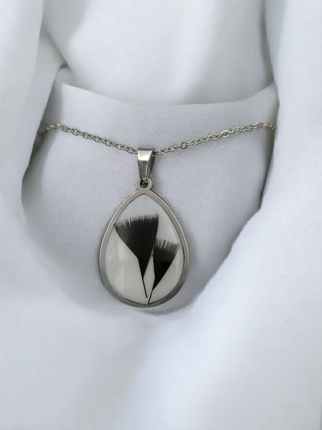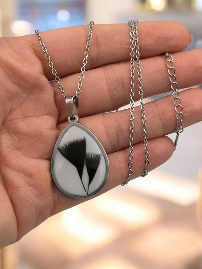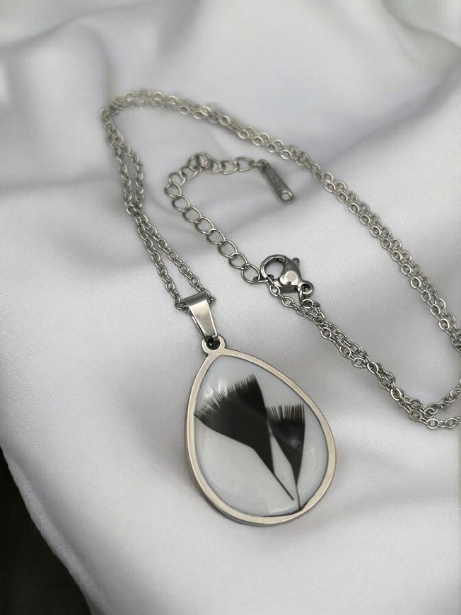 Egyedi kézzel festett nemesacél nyaklánc, antiallergén nemesacél szerelékkel, 45 cm-es nemesacél láncon, lánchosszabbítóval.
