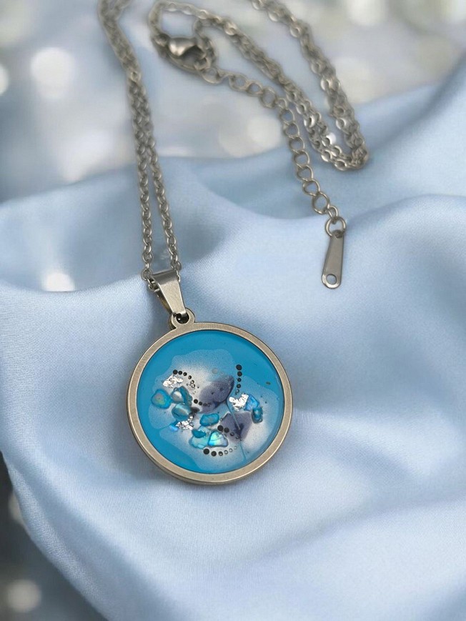 Egyedi kézzel festett nemesacél nyaklánc, antiallergén nemesacél szerelékkel, 45 cm-es nemesacél láncon, lánchosszabbítóval.