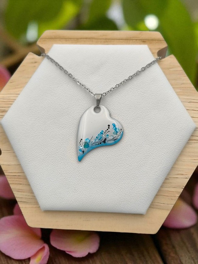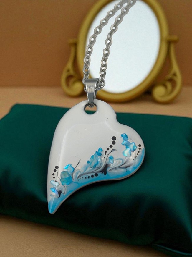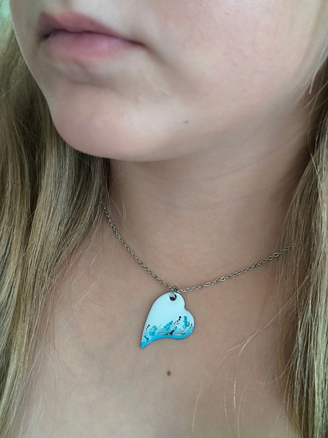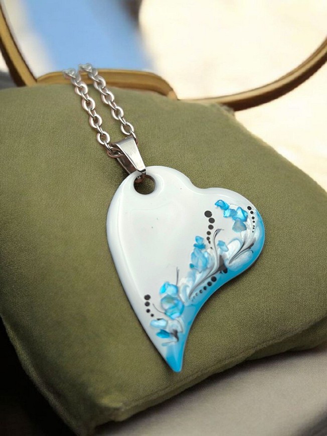 Egyedi kézzel festett nemesacél nyaklánc, antiallergén nemesacél szerelékkel, 45 cm-es nemesacél láncon, lánchosszabbítóval.