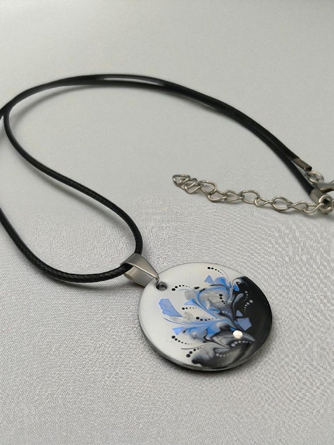 Egyedi kézzel festett nemesacél nyaklánc, antiallergén nemesacél szerelékkel, 45 cm-es viaszolt láncon, lánchosszabbítóval.