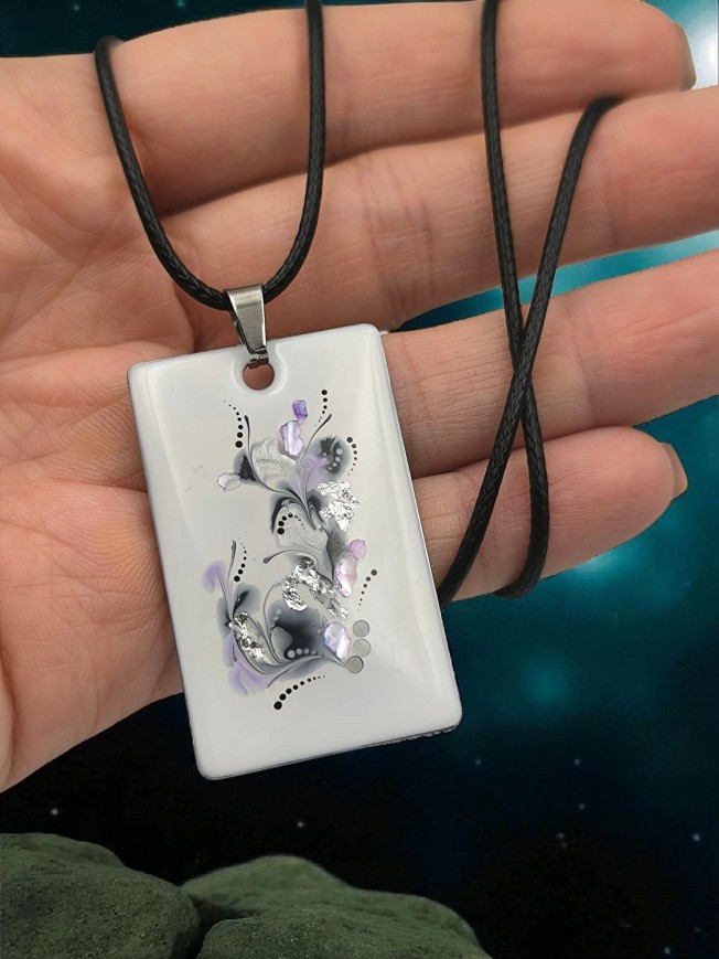 Egyedi kézzel festett nemesacél nyaklánc, antiallergén nemesacél szerelékkel, 45 cm-es viaszolt láncon, lánchosszabbítóval.