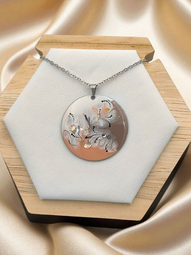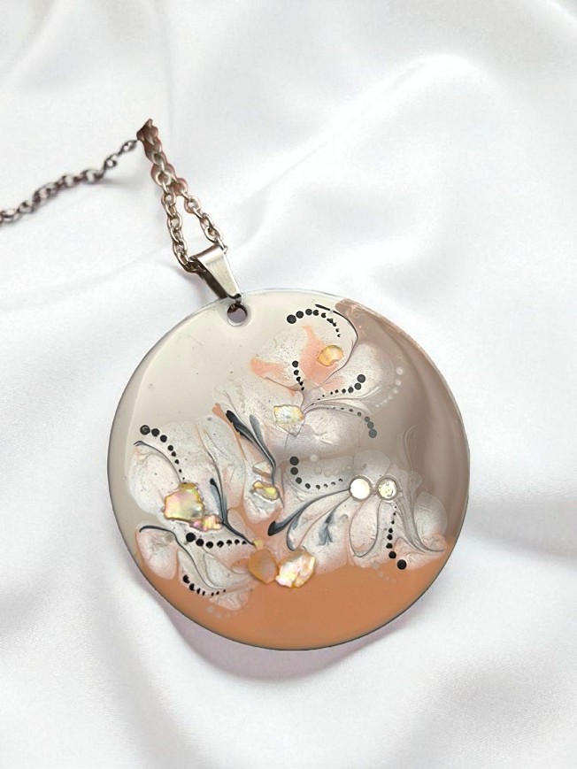 Egyedi kézzel festett nemesacél nyaklánc, antiallergén nemesacél szerelékkel, 45 cm-es nemesacél láncon, lánchosszabbítóval.