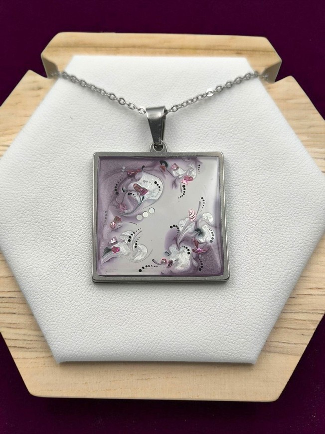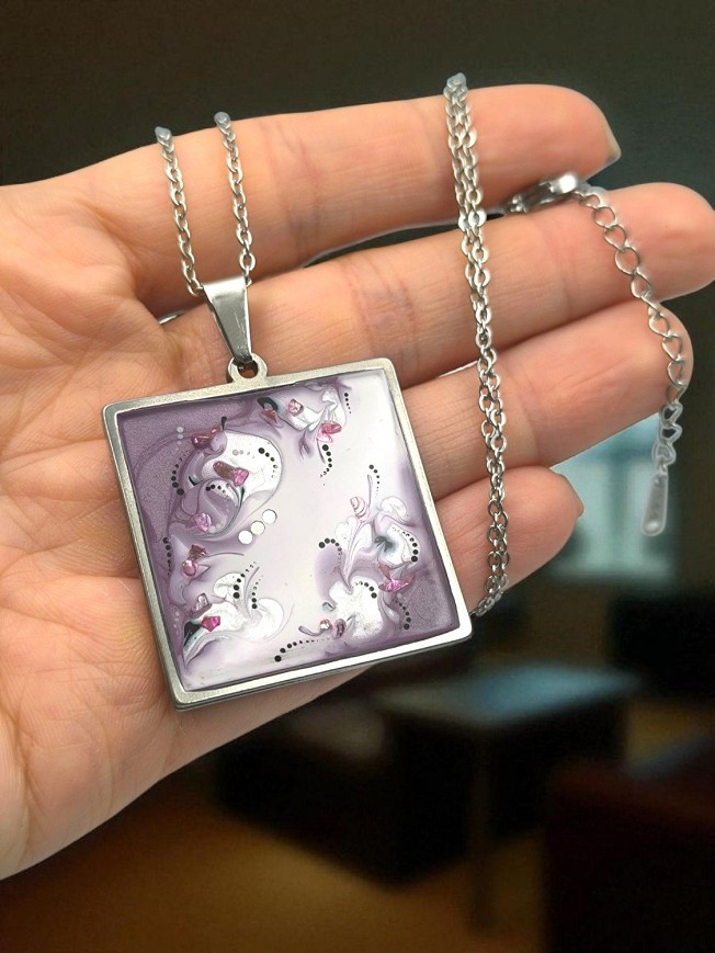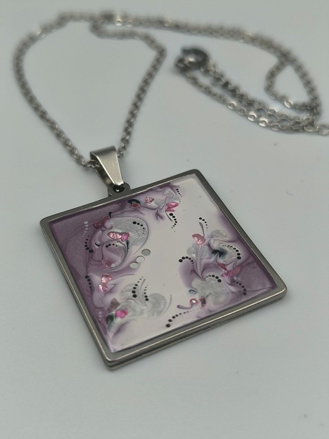 Egyedi kézzel festett nemesacél nyaklánc, antiallergén nemesacél szerelékkel, 45 cm-es nemesacél láncon, lánchosszabbítóval.