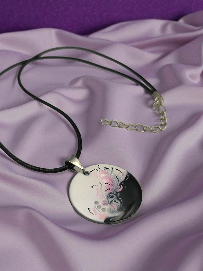Egyedi kézzel festett nemesacél nyaklánc, antiallergén nemesacél szerelékkel, 45 cm-es viaszolt láncon, lánchosszabbítóval.