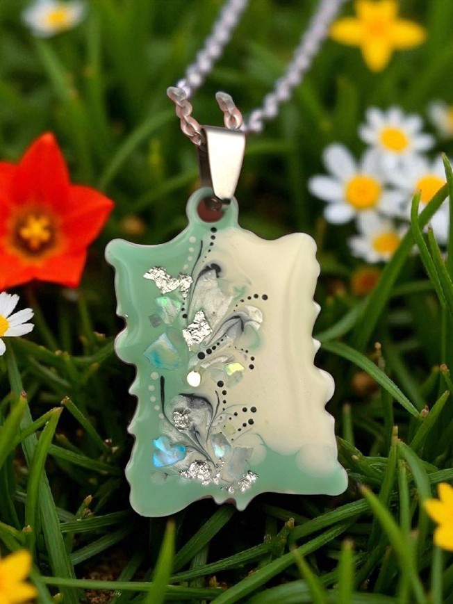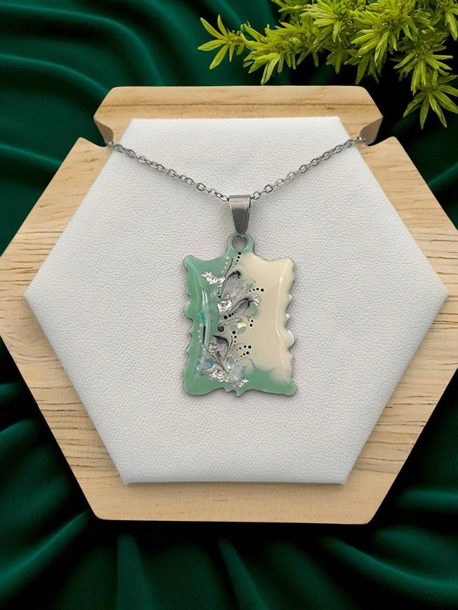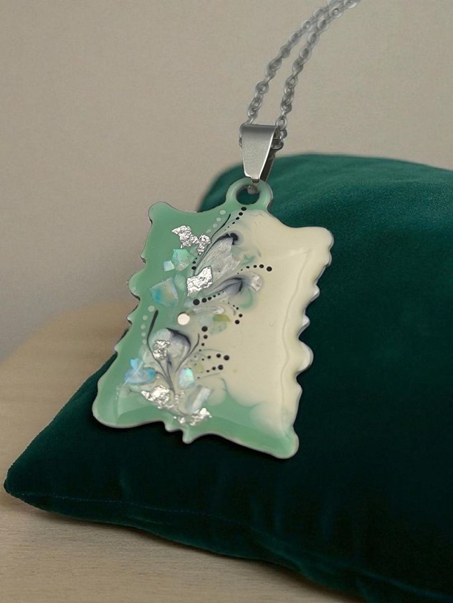 Egyedi kézzel festett nemesacél nyaklánc, antiallergén nemesacél szerelékkel, 45 cm-es nemesacél láncon, lánchosszabbítóval.