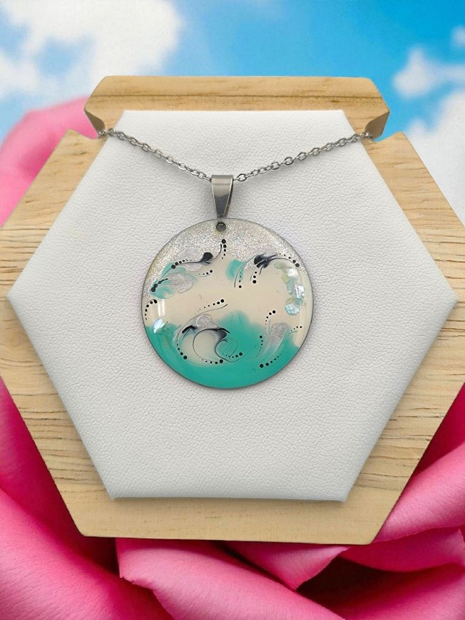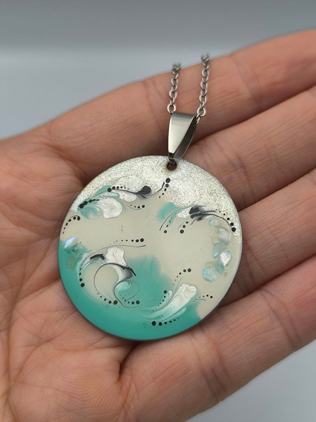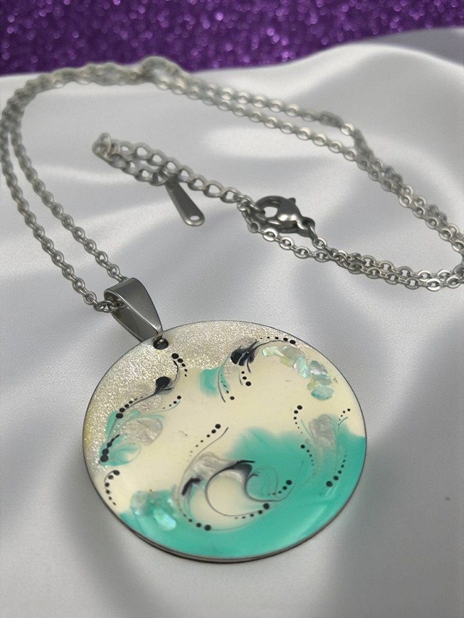 Egyedi kézzel festett nemesacél nyaklánc, antiallergén nemesacél szerelékkel, 45 cm-es nemesacél láncon, lánchosszabbítóval.